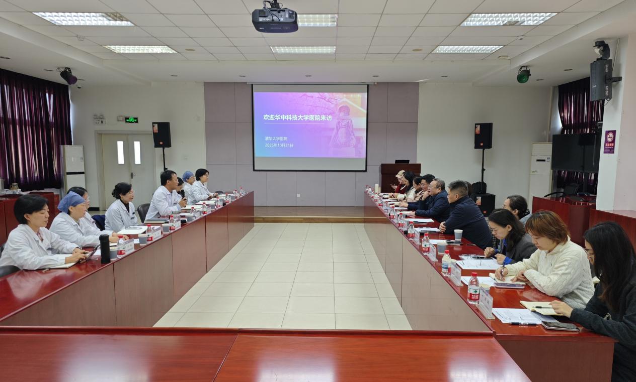 霍慧彬首先代表清华大学医院对华中科技大学医院的到访表示欢迎,并简要介绍了清华大学医院的定位和主要职能。李红星从医院历史、运行机制、中心工作开展、支撑和保障作用发挥等方面介绍了医院的基本情况。江洪洋简要介绍了华中科技大学医院的发展历程、科室设置、人员队伍、医疗设备与业务量等概况。