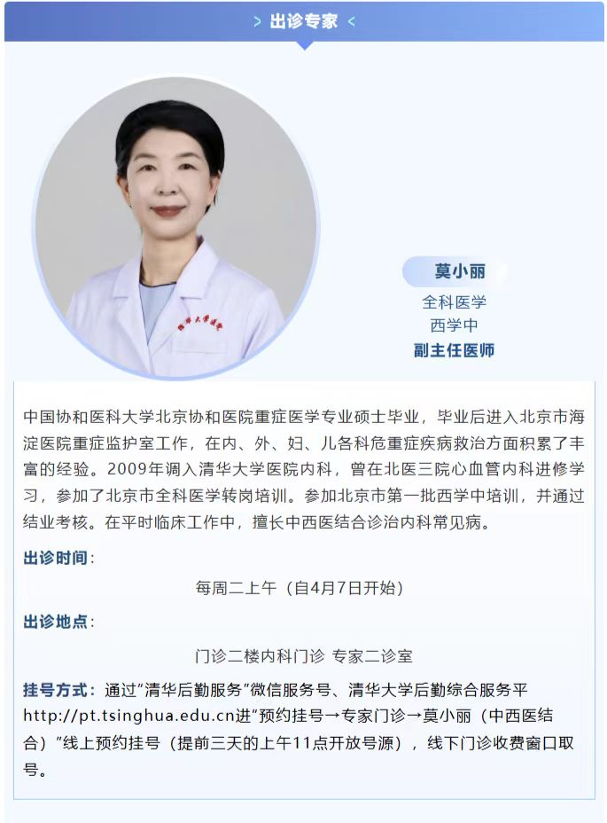 为进一步提升医疗服务质量,满足广大师生居民对中西医结合诊疗的需求,提供更全面、更个性化的健康解决方案,我院内科开设中西医结合门诊。秉承“以人为本、中西协同”的理念,应用现代西医精准的诊治方法与传统中医的整体观念、辨证论治方法协同互补,针对内科多种常见病、慢性病开展综合诊疗。