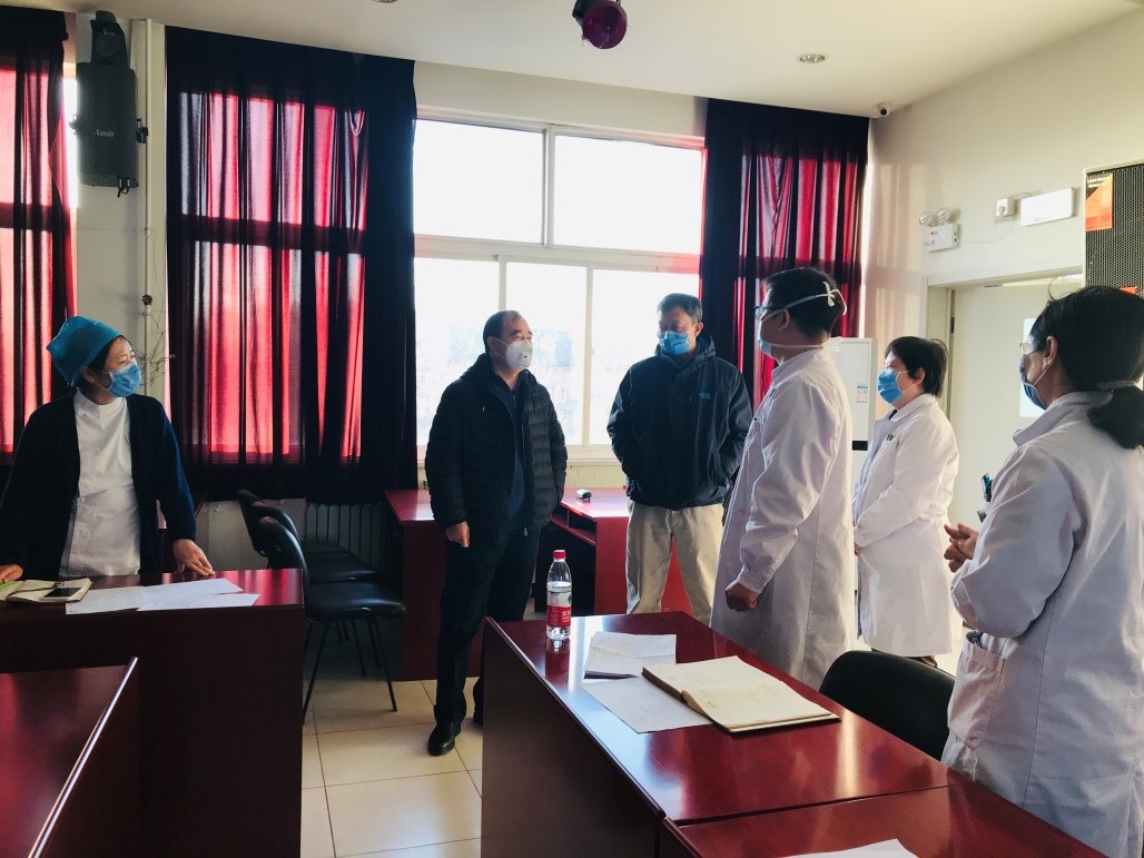 1月31日下午,吉俊民副校长、关兆东副总务长一行来到校医院调研防疫工作的开展情况。